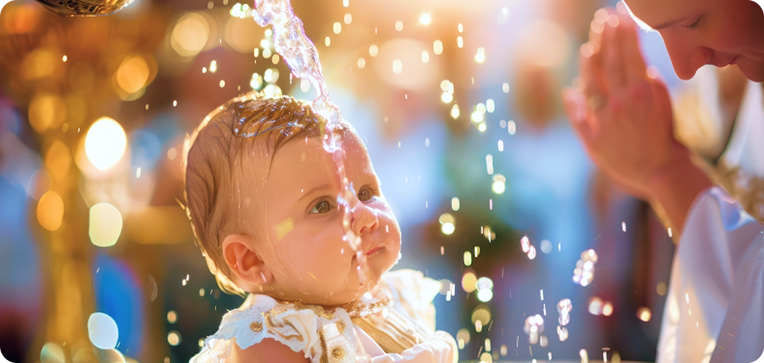 Батюшка окунает ребенка в купель и читает молитвы, благословляющие жизненный путь. Считается, что крестные родители после обряда становятся ребенку, его семье и друг другу родней.