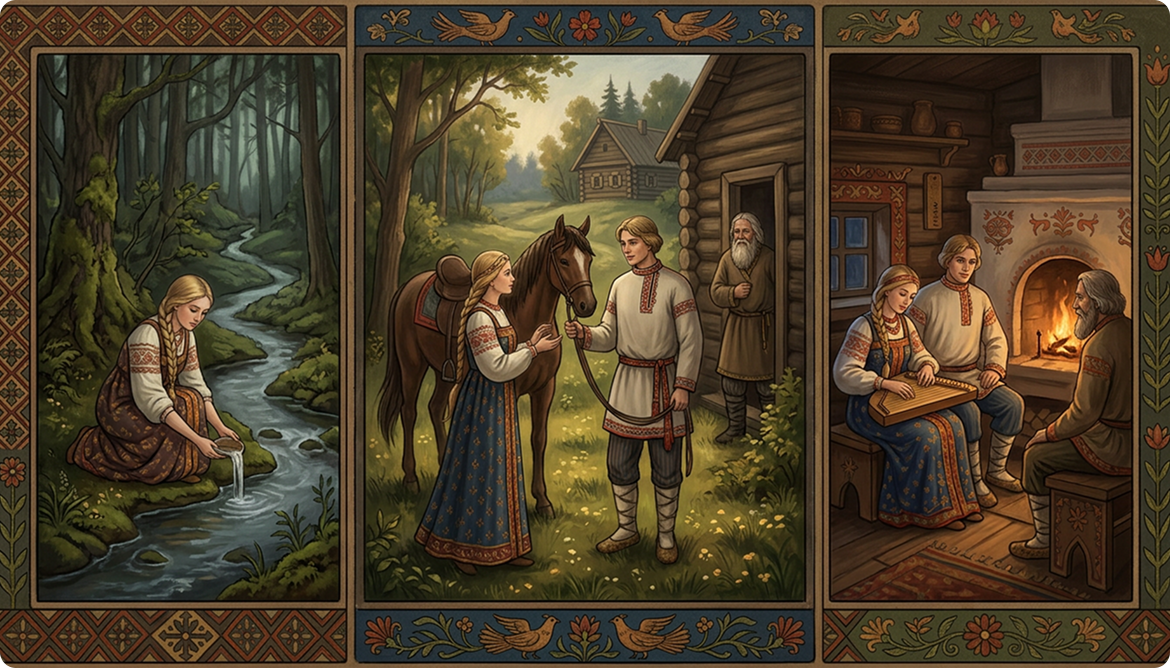 от опасности. В этих историях часто присутствует элемент волшебства, который помогает героям преодолевать трудности.