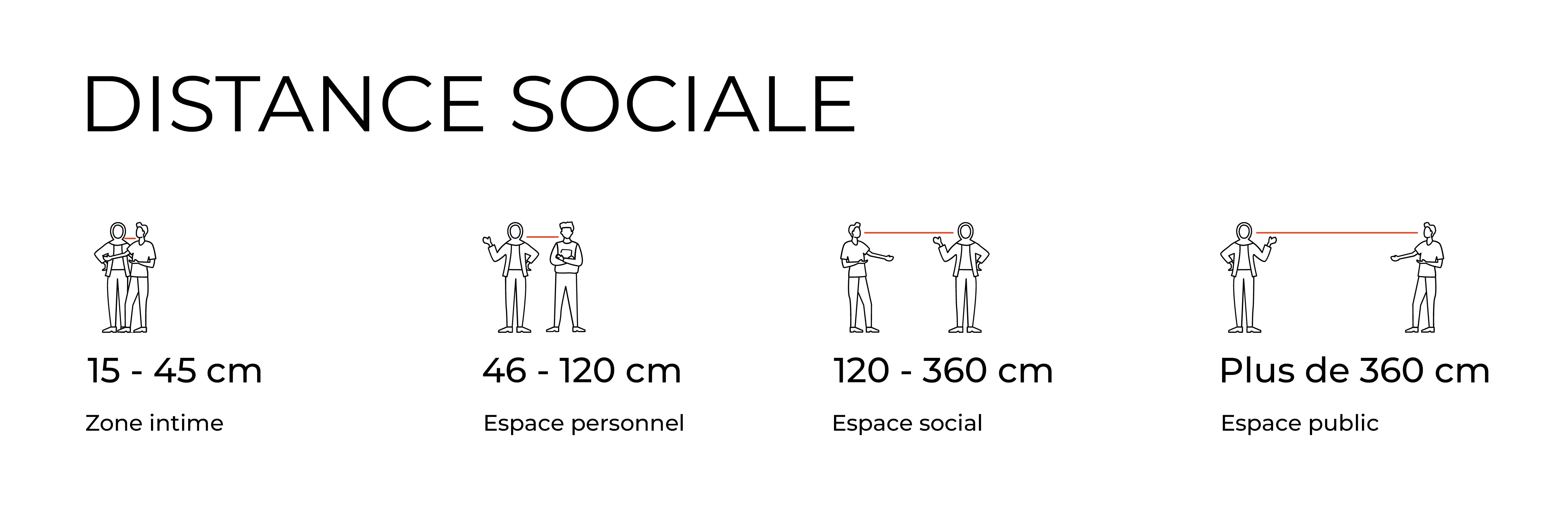 Pour le confort psychologique, la sécurité personnelle et pour prévenir la propagation des infections, il est nécessaire de maintenir une distance entre les personnes. La distance dépend de la proximité de votre connaissance, de l’âge, du sexe, des rôles sociaux et de la situation de communication.