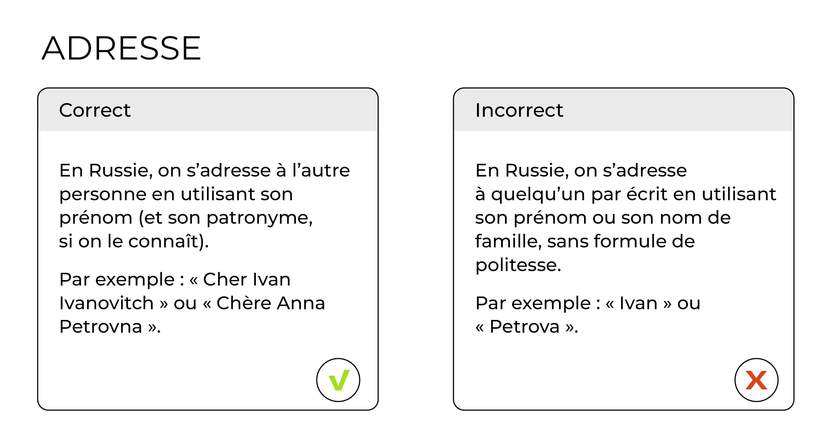 Il existe un proverbe en Russie qui dit : « Встречают по одежке, провожают по уму » (On juge d’abord par l’apparence, puis par l’intelligence), qui souligne non seulement l’importance de vos qualités personnelles, mais aussi l’importance de la première impression que donne votre apparence.