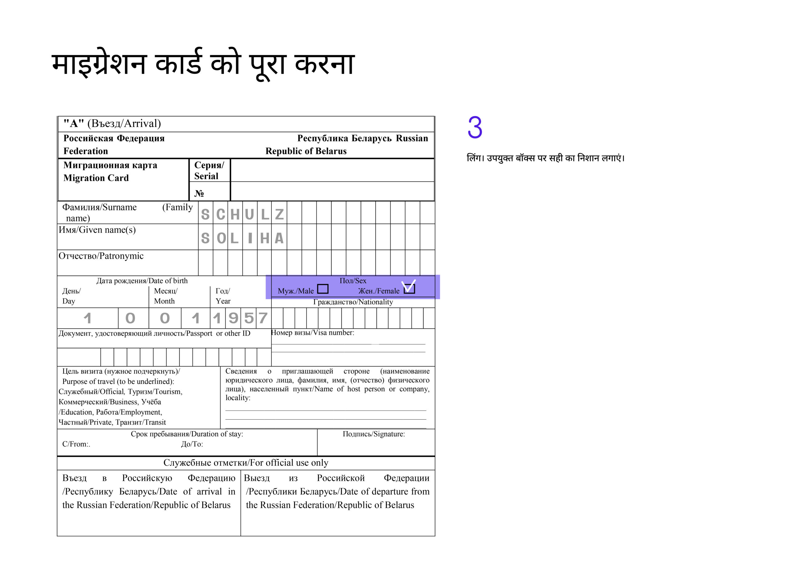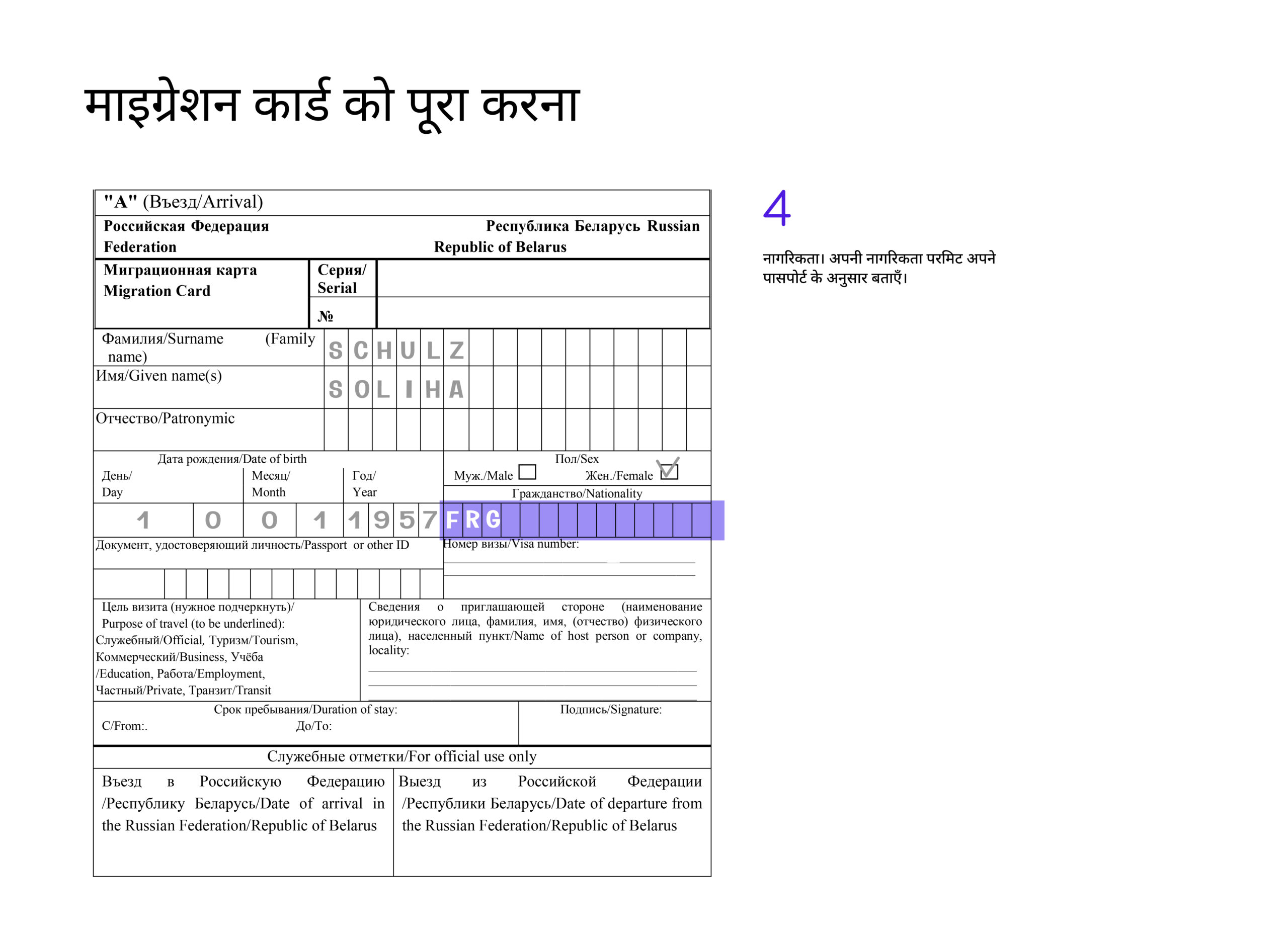 रूसी संघ में प्रवेश करते समय, पासपोर्ट नियंत्रण पर मौजूद बॉर्डर गार्ड ऑफिसर से माइग्रेशन कार्ड का फॉर्म ज़रूर ले लें।