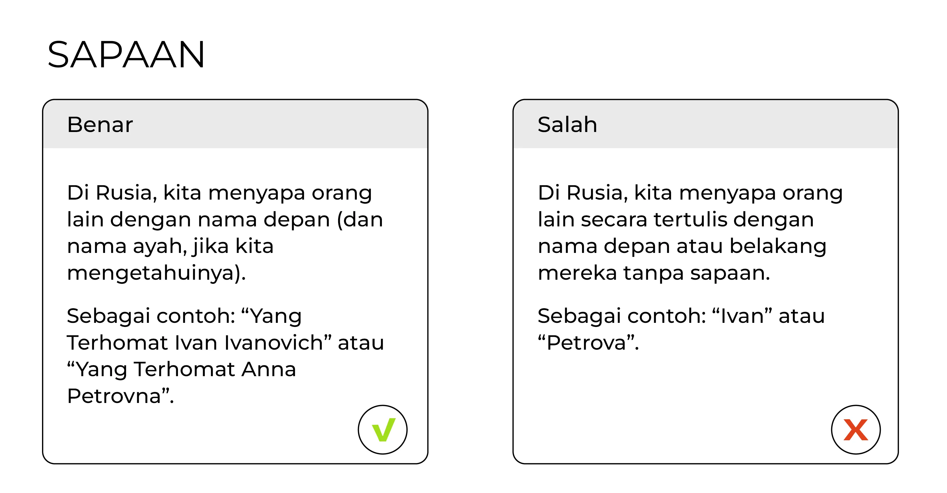 Ada sebuah pepatah di Rusia: “Встречают по одежке, провожают по уму” (Pertama Anda menilai seberapa baik, kemudian Anda menilai seberapa bijaksana), yang tidak hanya menekankan pentingnya kualitas pribadi Anda, tetapi juga pentingnya kesan pertama dari penampilan Anda.