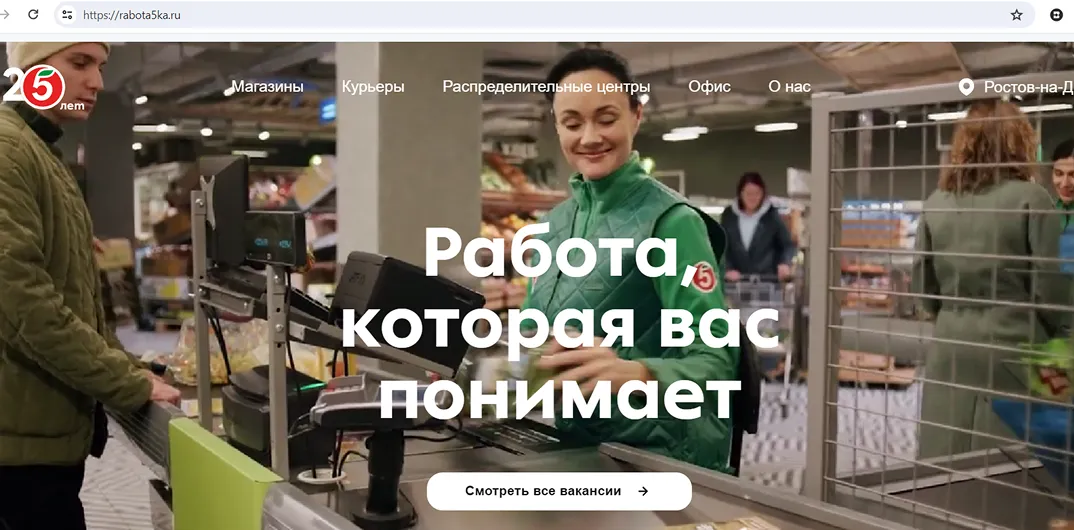 Многие компании и организации, особенно те, которые имеют деловые связи с другими странами, активно нанимают иностранных работников, размещают на своих сайтах актуальные вакансии. Ищите известные компании в интересующей вас сфере напрямую. Примером из сферы торговли может служить компания «Пятерочка», которая работает во всех регионах страны. На сайте укажите город, найдите раздел «Вакансии», выберите подходящую должность и впишите свои контактные данные.