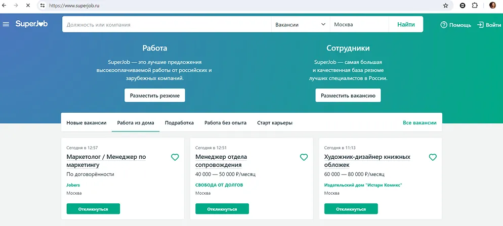 На платформах типа «Superjob», «Авито» или «HH.ru» вы можете задать параметры (регион, свой возраст, наличие опыта, сфера деятельности и другие), чтобы просмотреть банк вакансий.