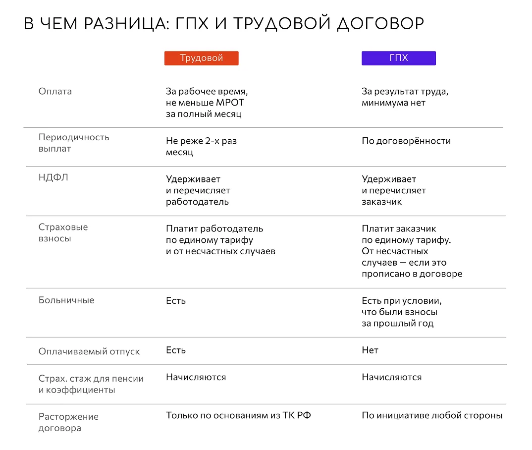 Трудовой договор предпочтительнее, чем договор ГПХ, так как он дает работнику больше гарантий и средств защиты. Среди них: оплачиваемый отпуск и больничный, охрана здоровья при выполнении трудовых функций.