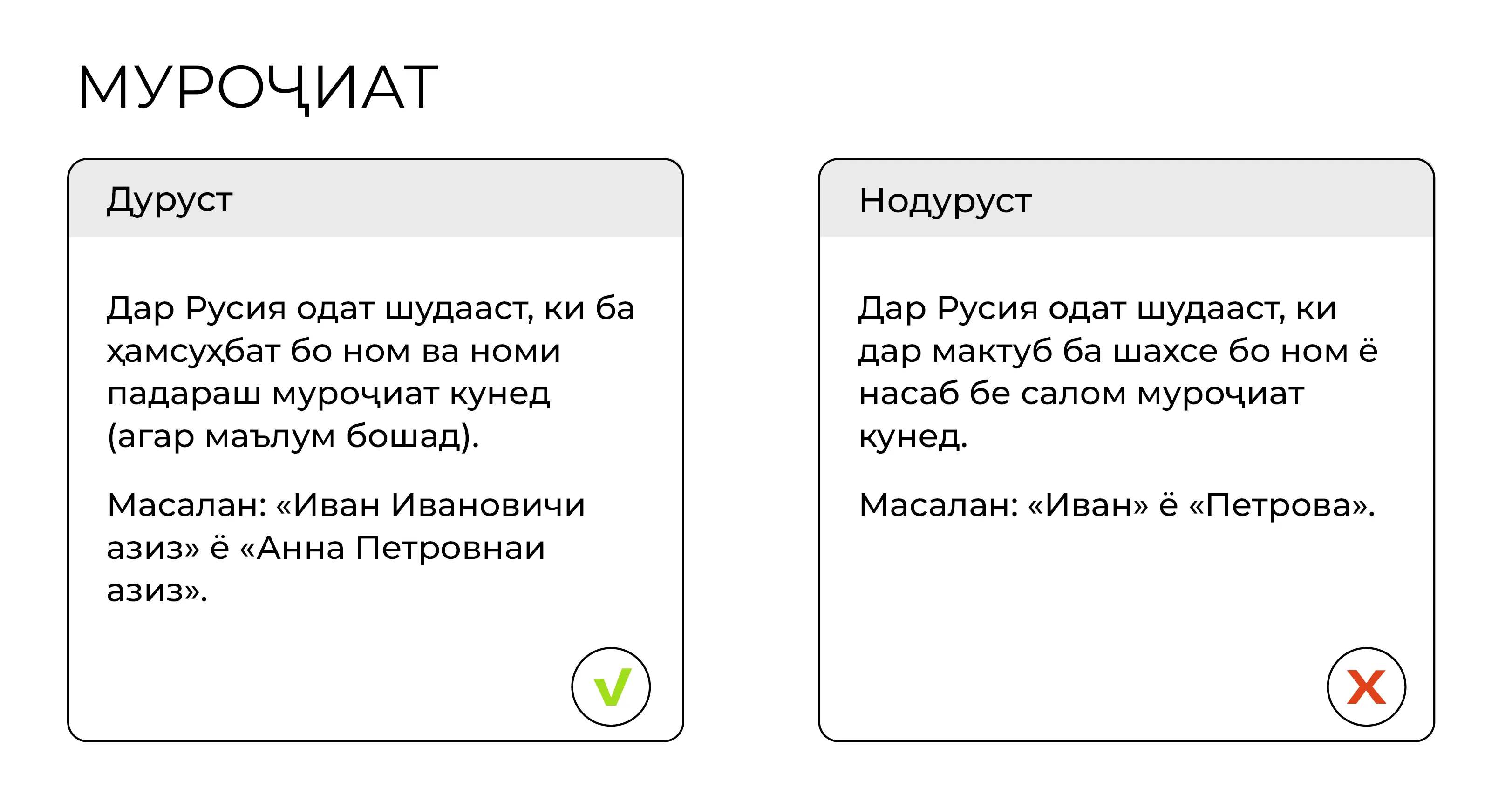 Қоидаҳо барои навиштани мактубҳои муқаррарӣ ва почтаи электронӣ татбиқ мешаванд. Тавсия дода мешавад, ки ба паёмҳои электронӣ дар давоми 24 соат пас аз қабул ҷавоб диҳед. Шумо метавонед бо қоидаҳо ва намунаҳои ҳарфҳо муфассал дар ин ҷо шинос шавед.