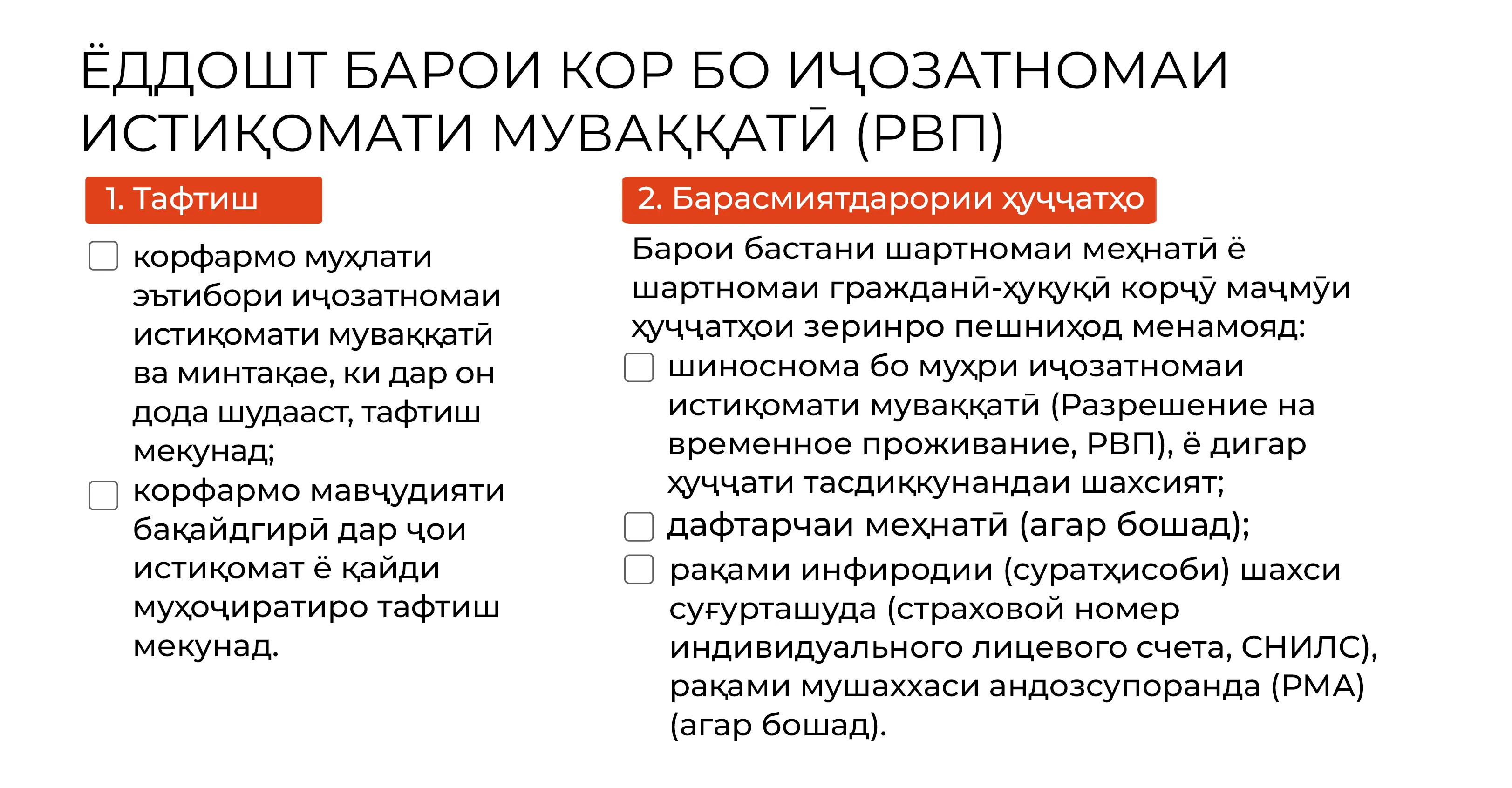 Агар шумо аз кишварҳои дигар омада бошед ва иҷозатномаи истиқомати муваққатӣ (РВП) ё иҷозати истиқомати доимӣ (ВНЖ) дошта бошед