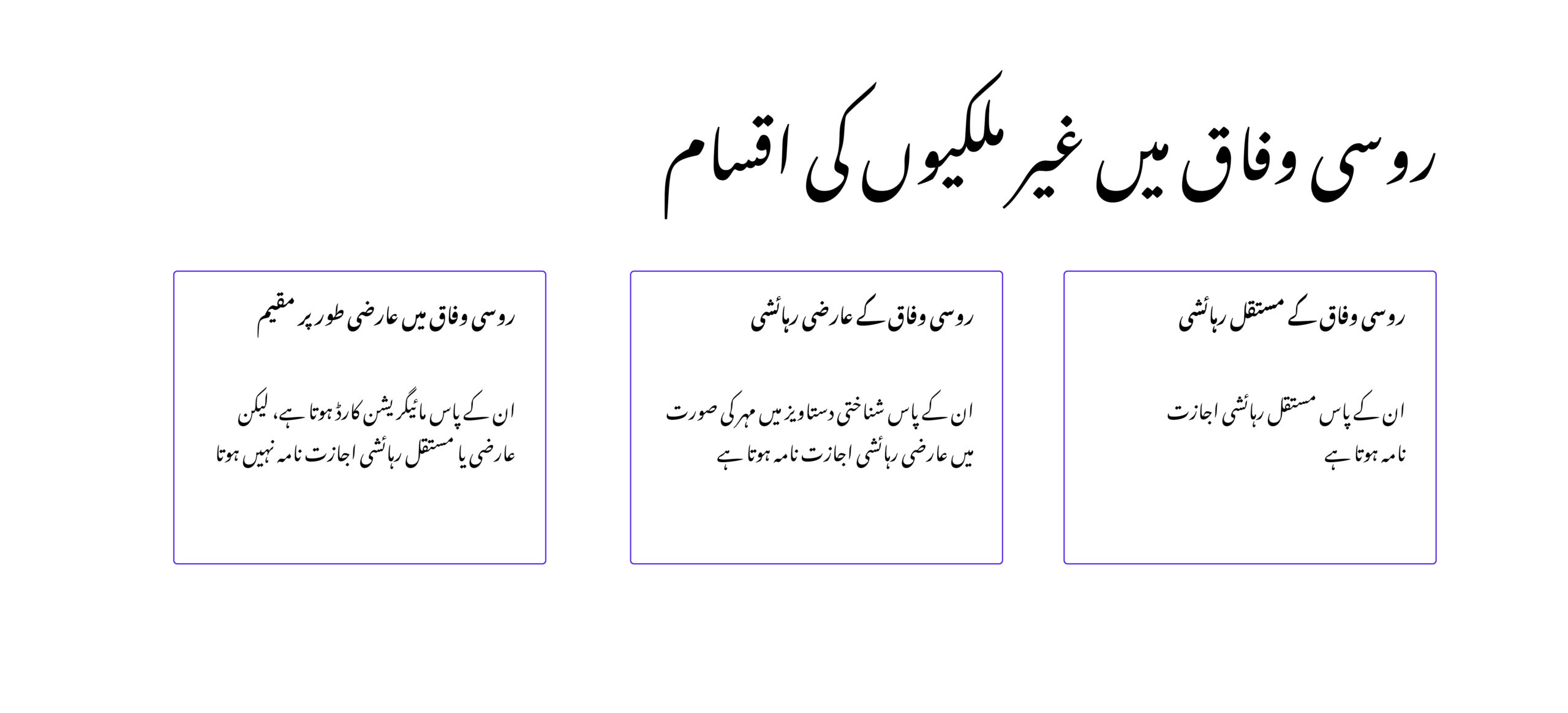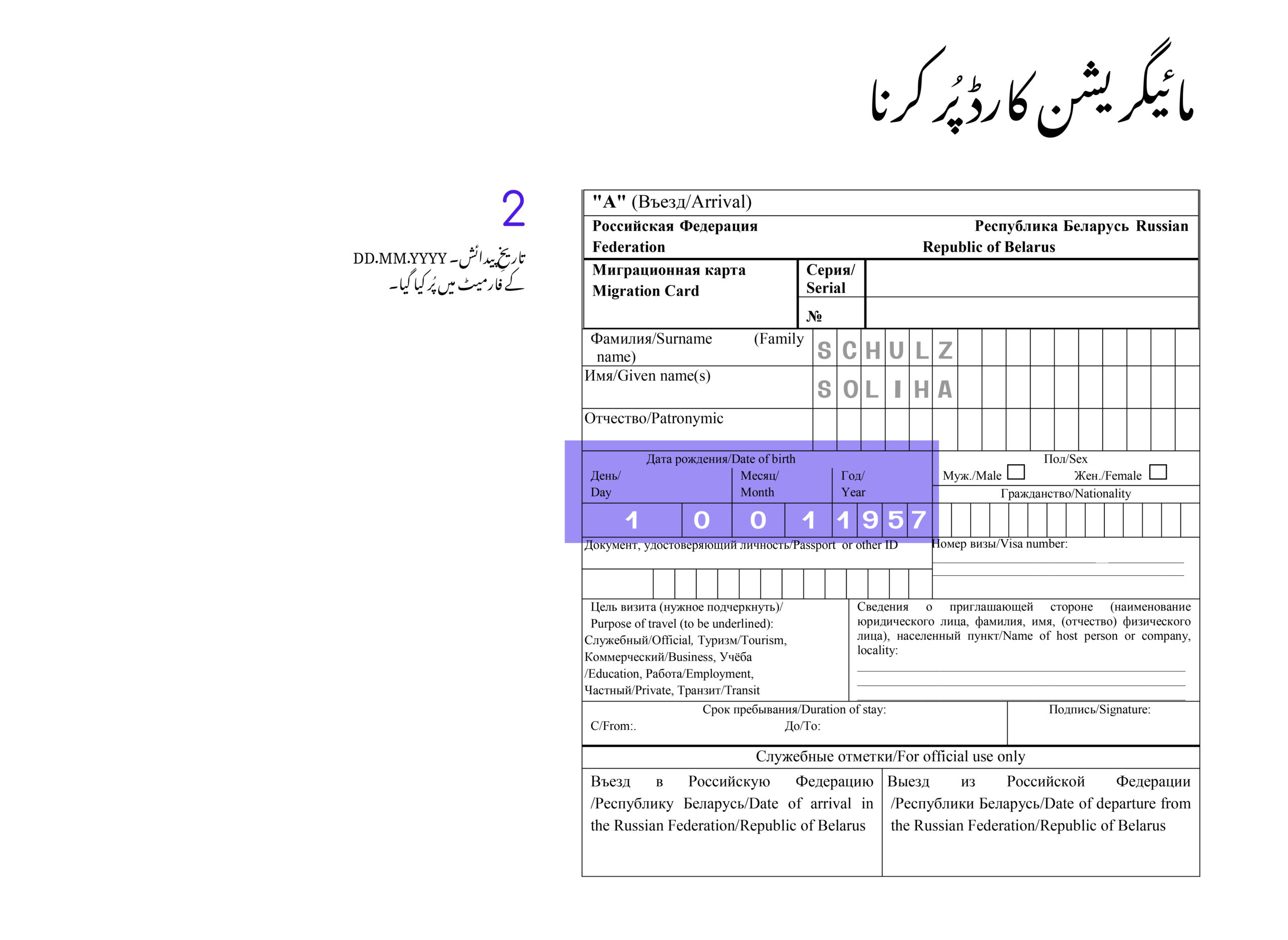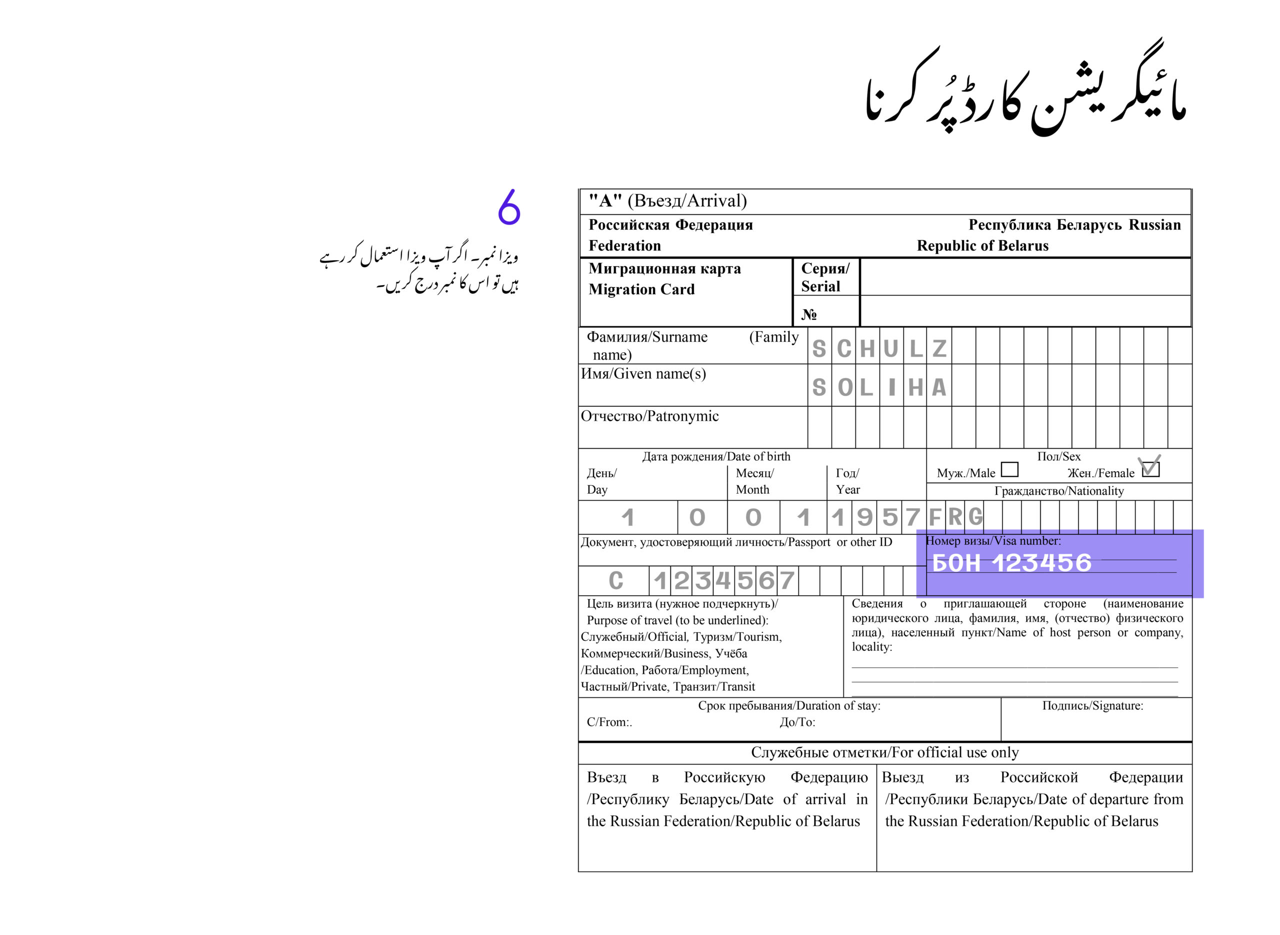 - روس میں داخل ہوتے وقت مائیگریشن کارڈ پُر کریں اور روسی وفاق کے علاقے سے روانگی کے وقت اسے متعلقہ اہلکار کے حوالے کریں۔