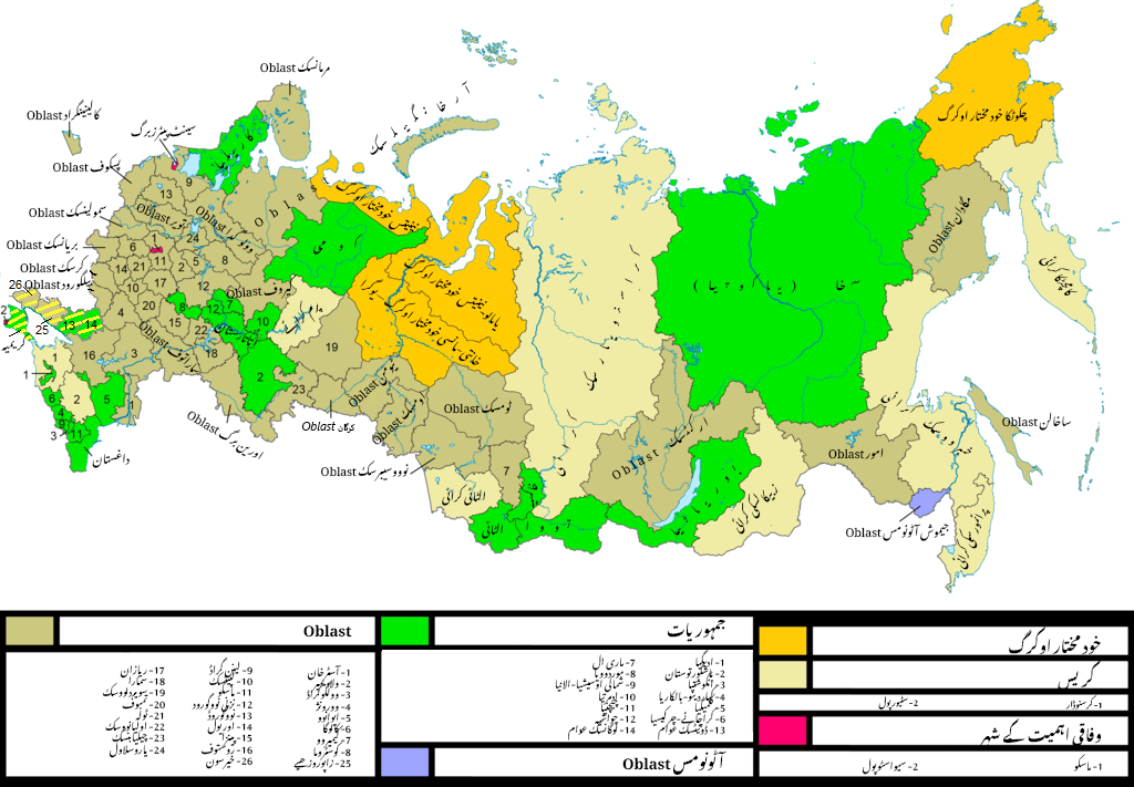 - وفاق کے مضامین کی برابری کا مطلب یہ ہے کہ تمام جمہوریتیں، کرائے، اوبلاست، وفاقی اہمیت کے شہر اور خود مختار اضلاع وفاقی حکام کے ساتھ اپنے تعلقات میں برابر حقوق اور ذمہ داریاں رکھتے ہیں۔