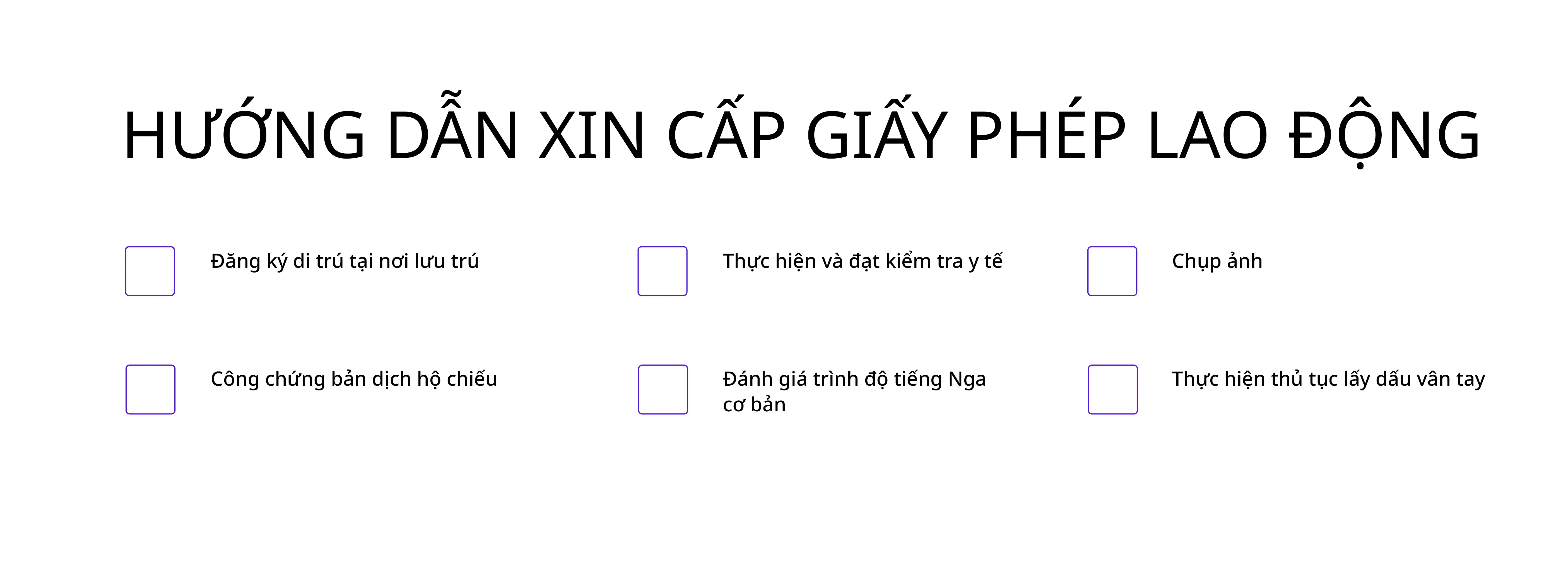 Để xin giấy phép lao động tạm thời, người di cư phải làm thủ tục đăng ký di trú tại nơi lưu trú, công chứng bản dịch hộ chiếu, khám sức khỏe, chứng minh kiến thức cơ bản tiếng Nga, chụp ảnh và thực hiện lấy dấu vân tay. Cả giấy phép lao động tạm thời và giấy phép lao động đều được cấp tại các đơn vị di trú của Bộ Nội vụ (МВД).